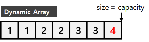 그런데 만약 size의 값과 capacity의 값이 일치해서 더 이상 size의 값을 늘릴 수 없는 상황이 오면 어떻게 해결할 것인가?