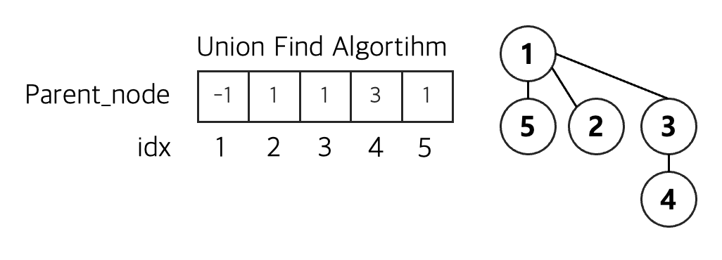 각 배열의 원소값은 해당 인덱스의 부모 노드를 가리킨다.