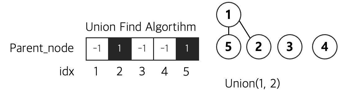 노드1과 노드2를 유니온 연산을 진행한다.