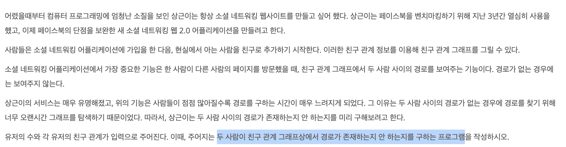 마찬가지로 해당 문제도 단순히 모든 상황에서 DFS/BFS를 사용해 두 친구 노드가 연결되어 있는지 탐색하고자 하면 시간초과가 발생한다.