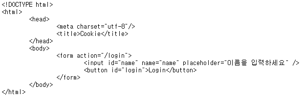 * NODE.JS에서 cookie2.html HTML 파일을 Content-Type을 이용해 HTML 파일임을 명시해 준 경우