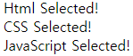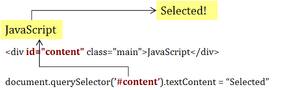 content id를 querySelector로 접근하여 해당 element의 textContent를 Selected!로 변경하는 예시입니다.